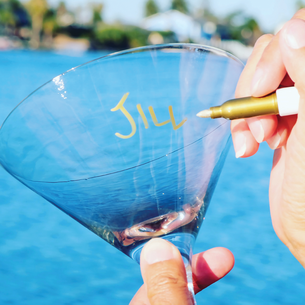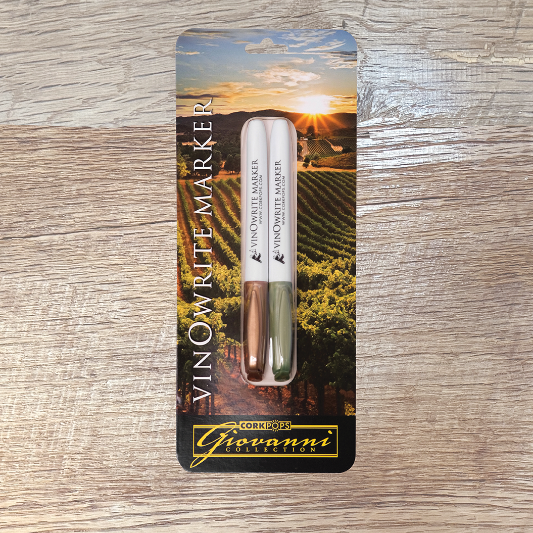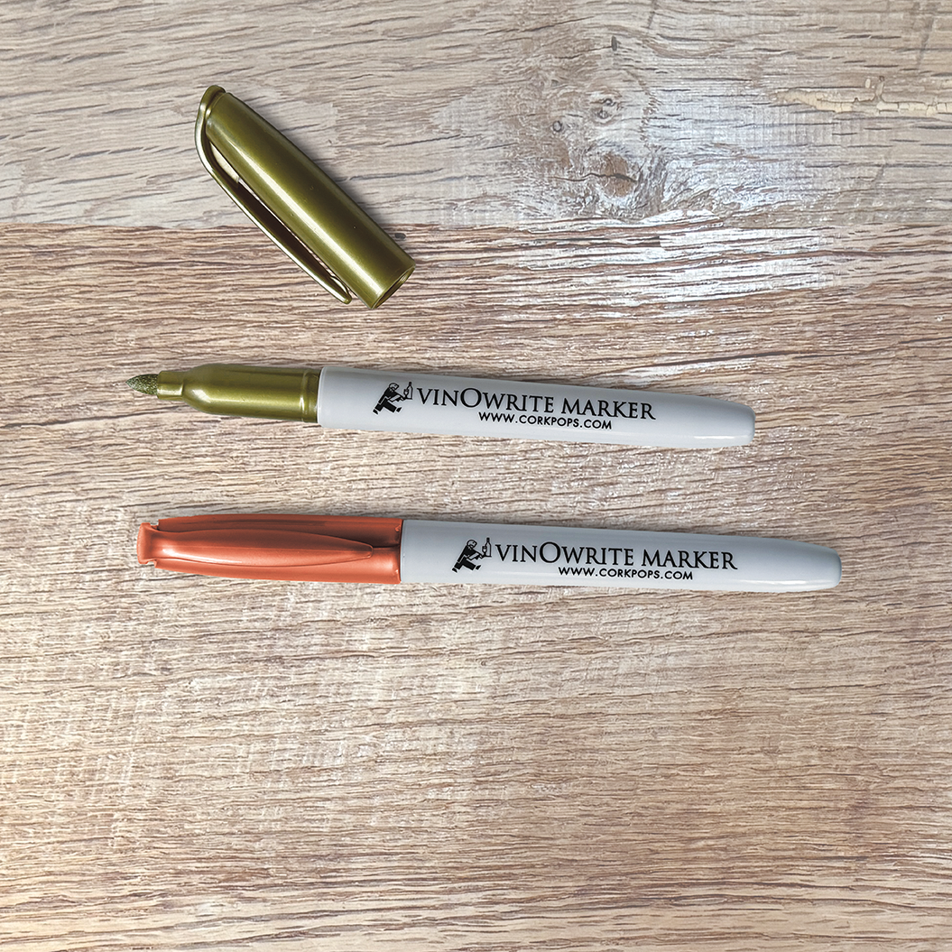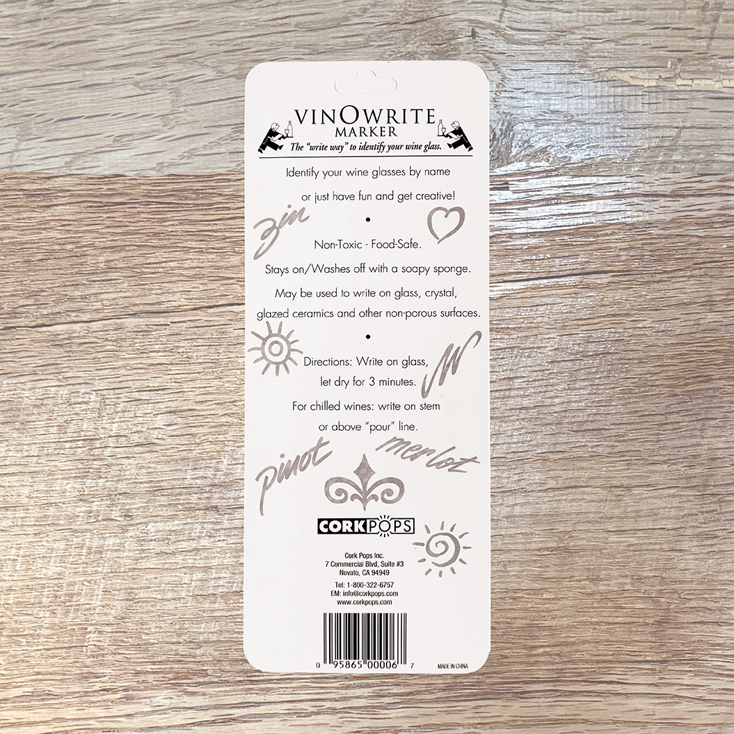 The "write" way to keep track of your wine glasses with the Wine Glass Writer Pens from Cork Pops. At your next party, get the Cork Pops vinOwriter Wine Glass Writer Pens and let your guests write their names or draw a picture on their wine glasses. The Wine Glass Writer Pens use non-toxic, patented ink that can easily write on glass, glazed ceramics, leaded crystal, and plastic but washes off with a sponge or in the dishwasher. Wineglass writing pens also make a great gift idea for those wine lovers on your list.